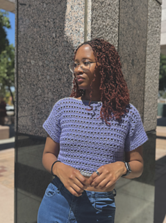 This is a made to measure pattern where you measure your own body to create this garment. Meaning there are no specific stitch counts or rows for this pattern to ensure that you are able to crochet the size that you’d prefer, and any yarn of your choosing!