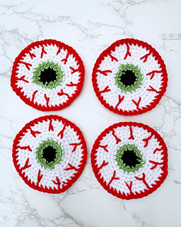 Stitch a spooky-cute eyeball crochet coaster in continuous rounds using easy US terms—perfect for quick makes and stashbusting scraps.
