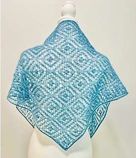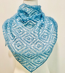 Meet your new go-anywhere essential: a whisper-light kerchief that blends modern geometry with effortless elegance. Knit end-to-end, this design features a striking diamond lace motif that feels both architectural and fluid on the needles.