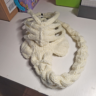 Finished measurements: top of body to tip of tail is approx 29” and check to cheek (width) is approx. 10”
