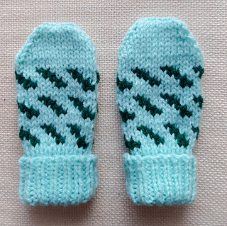 A pair of cute little mittens for the new baby. These mittens are knitted plain or in Fair Isle. There are several Fair Isle patterns to choose from.