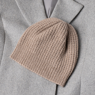 The Fair Winds Hat is knit in the round from the bottom up with DK-weight merino wool. The design features a broken rib stitch, and the hat is very stretchy.