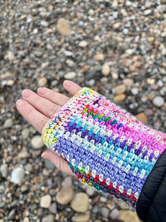 The main body section of the mitts is worked flat. It is then seamed using slip stitch (or sewn together if you prefer) leaving a thumb hole. You will then add a top and bottom cuff edge to the main body section to finish the mitts.