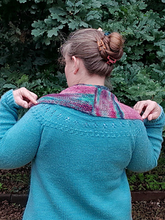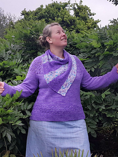 The Fairy Lily Cowl uses the same lace patterning as the Fairy Lily Sweater but this time in garter stitch and with stripes!