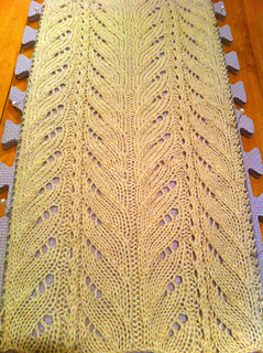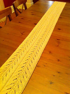 This is a great, 1 skien, table runner pattern that is ideal for beginning lace knitters. It’s simple, quick and immensely gratifying to knit as the pattern takes shape almost immediately!