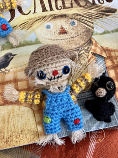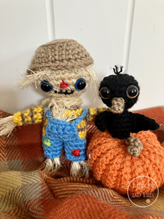 The pattern contains steps-by-steps instructions to crochet a Scarecrow and a Crow amigurumi toy. The pattern also contains pictures to help you along the way.