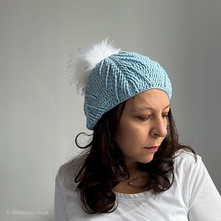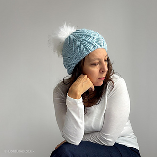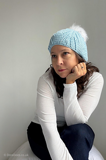 The hat is offered in one adult size with a finished circumference of 50cm / 20in and a height of 25cm / 12in