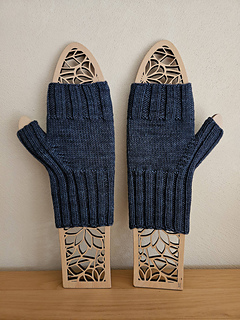 These fingerless gloves are worked flat, starting on the wrist. Smaller needles are used on the ribs for a better fit.