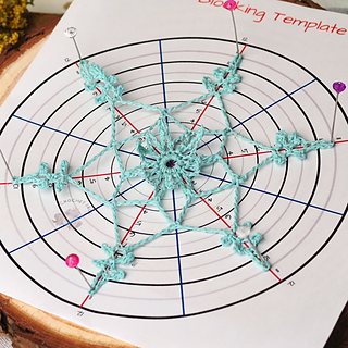 The Snowflake measures 6” after blocking - it is approx. 11 circles on my Snowflake Blocking Template: https://crochetfrog.com/tools/snowflake-blocking-template/ .