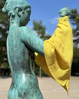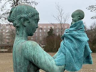 The Fårø Blanket is af single-color blanket with circle ornaments. You can knit the blanket in two sizes: a baby blanket and af throw.