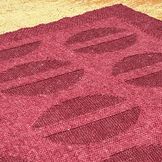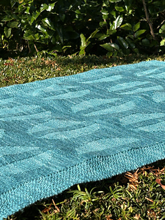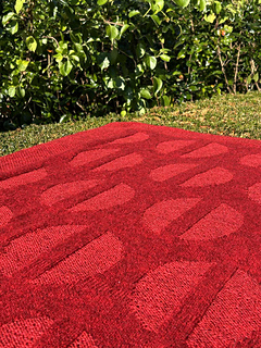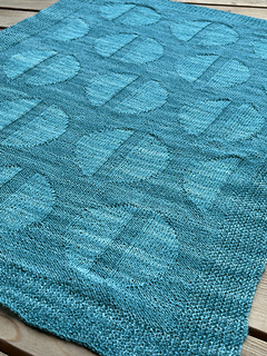 Both blankets are knit with one color, and the pattern is created with knit and purl stitches. The pattern consists of rows of circle ornaments, with the circles split in two by a vertical part. The circle ornaments are created by using purl stitches when the background is knit stitches, and using knit stitches when the background is purl stitches.