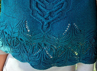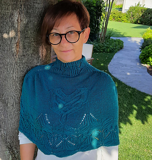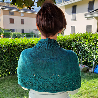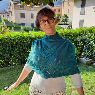 Costruita dal basso verso l’alto e lavorata in tondo, è una cappa che richiede un po’ di attenzione sia per il ricco lace, che per la sezione a trecce, ma niente di impossibile!