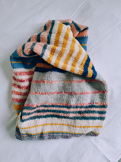 This is an easy and engaging knit that is finished in no time. You only need circular needles and some preferably soft (non-itchy) yarn in different colours.