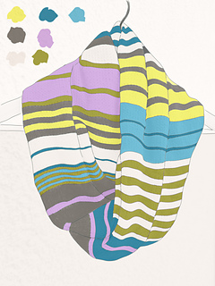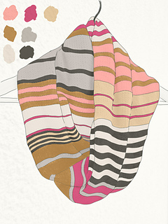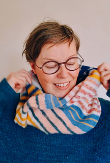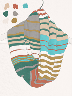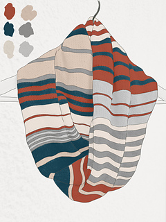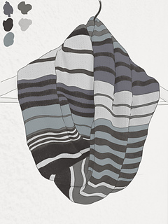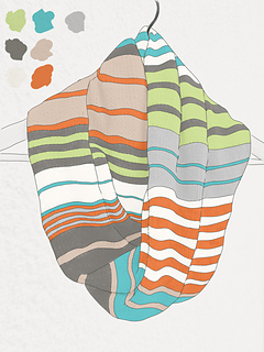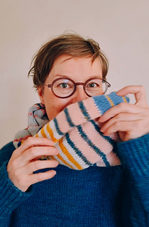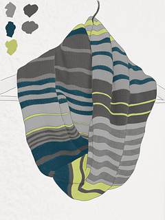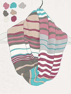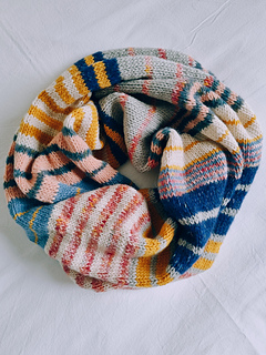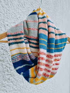 An easy and versatile striped infinity scarf / cowl knitted in the round. The knitted tube is joined into a cowl with kitchener stitch and the yarn ends are weawed in as you knit. The scarf drapes nicely since the tube is twisted before the ends are joined.