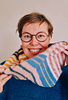 Tämä on helppo mutta sopivan kiinnostava ohje, joka valmistuu nopeasti. Tarvitset vain pyöröpuikot ja pehmeää (ei-kutiavaa) lankaa eri väreissä.