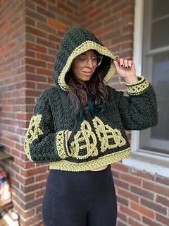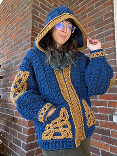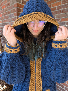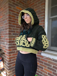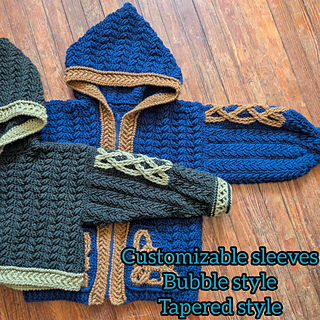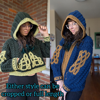This crochet pattern comes with two pdfs, one for the zip-up version and one for the pullover hoodie version of this pattern. You can make either style as a cropped or long length coat, and you can choose between two different styles of sleeve for both styles.