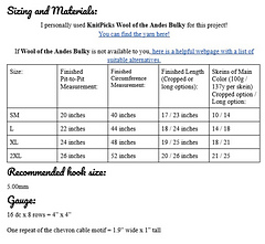 There are four sizes in this pattern. The written pattern itself contains charts, written instructions, and line by line photos of each of the cabling sections. There are also some helpful video links for anyone new to working fpdc as a cabling technique in crochet.