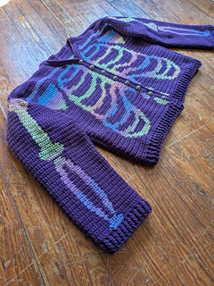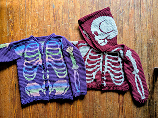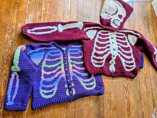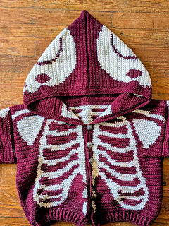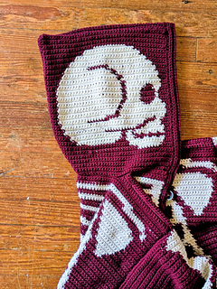 The Fck AI skeleton sweater comes with two pdfs, with a hooded and cardigan version. Each version can be made as a cropped length or long length sweater. The pattern comes in 3 sizes. When laid flat, their pit to pit measurements are 22”, 27” and 33”. The pattern contains unique charts for each customization option and size! The pdfs also include notes on how to use Stitch Fiddle and its progress tracker, and advice on blocking your finished item.