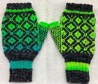 Use a solid or tonal color and self striping sock weight yarn to make these mitts. This can be a stash buster pattern!