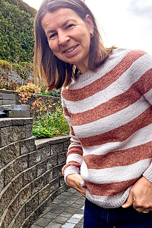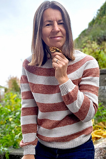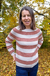 Of course, you can also knit the Febe sweater using a different yarn of similar weight. It doesn’t have to be striped—it works great as a solid color project, too. Or, why not have some fun with colors and knit it in multi-colored stripes? Please note: If you change the color scheme, you will need different yarn amounts than those listed in the pattern.