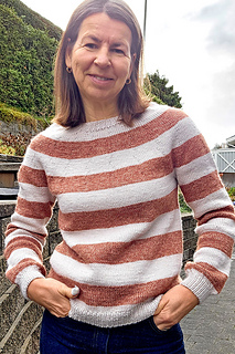 Oczywiście możesz wykonać sweter Febe również z innej włóczki o podobnym metrażu i niekoniecznie w paski, ale jako projekt jednokolorowy. I dlaczego nie pobawić się kolorami i wydziergać go w pasy w różnych kolorach?
