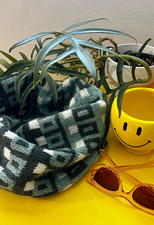 Step into a retro rhythm with Feeling Groovy, a stranded-knit Möbius-style cowl inspired by the bold geometry and playful spirit of vintage knitwear. This design blends nostalgic charm with modern wearability, wrapping you in a continuous twist of color, movement, and texture.