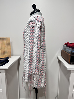 - Gauge and tension will affect finished measurements; adjust hook size as needed to achieve the intended drape.