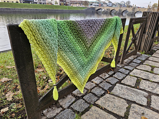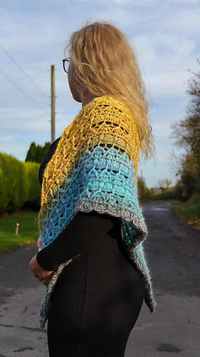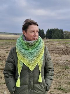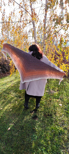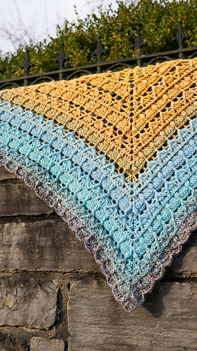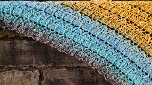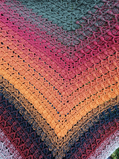 Chusta wykonana szydełkiem. Połączenie puff i reliefów daje efekt 3d a chusta nabiera objętości.