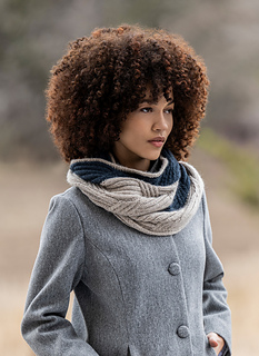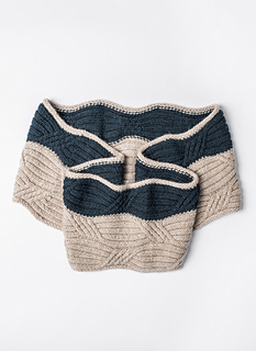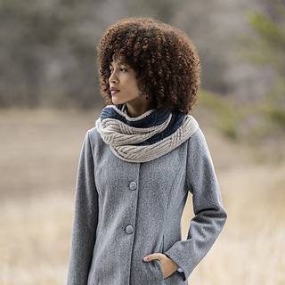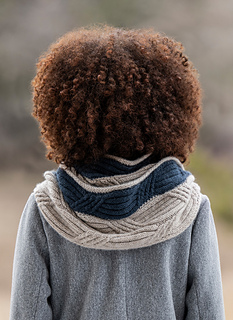 This two-color intarsia cowl is knit with soft and warm baby alpaca. Knit flat and seamed, this piece is full of cozy cables.