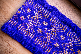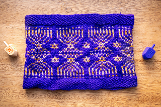 A standard cowl with delicate, mirrored menorahs and Magen Davids. Knitted in the round, and identical either way up, this elegant design makes a perfect Hanukkah treat for a loved one (or yourself!).