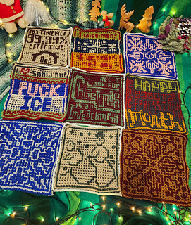 I decided (very last minute) to put together an interlocking crochet Christmas blanket full of the kind of holiday cheer your conservative Christian parents definitely won’t approve of.