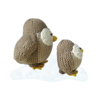 One size only - The big owl is 14cm tall (without the hat) and the little owl is 8cm tall.