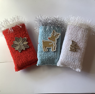 Ideal for a small gift to take someone in hospital. Knitted from small amounts of yarn and adding a festive decoration. Made to cover a handy packet of paper hankies. Quick to make with easy instructions.