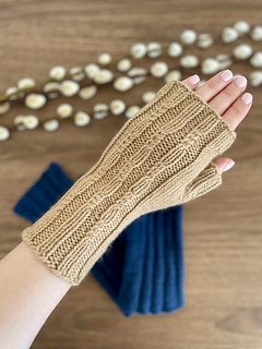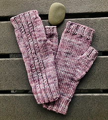 These simple fingerless mitts are knit bottom up, in the round and seamless, with a thumb gusset, created with symmetrical lifted increases. We start by knitting the wrist area, then do increases for the thumb, the thumb stitches are left on hold while we knit the hand. When the rest of mitt is finished we pick up thumb stitches again and work in the round to knit the thumb.