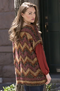 A dramatic chevron pattern in a total of five colors in ADELE and RITRATTO shows off the mix-and-match quality of Stacy Charles Fine Yarns in a standout top.