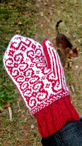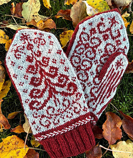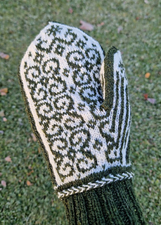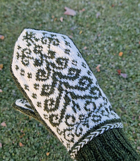 Vacker och sirlig som ett filigransmycke. Så känns vanten med den krusidulliga julgranen. En lek med både ord och snirkliga mönster.