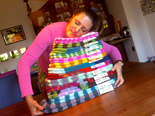La lana è del tipo bowlki quindi molto grossa e si lavora con ferri dritti e con il gioco di ferri (tipo da calza) da 8,0 mm.