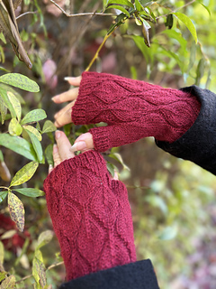 Pattern is available for Small (7 inches) and Medium/Large (8/9 inches) sizes. Palm side of the mitts is knitted in stockinette stitches.