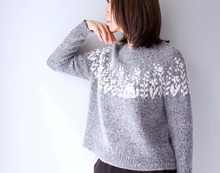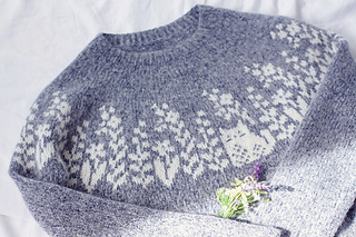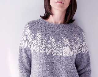 Inspired by the little feline visitor in my garden, the Fiona sweater portrays the charming picture of the adorable kitty in the company of beautiful blooms. The slightly cropped sweater is worked seamlessly in the round from the top down, and has short-rows to raise the back neck for a comfortable fit. Be it with a dark or light background color, this gorgeous stranded colorwork sweater is equally striking and delightful to knit and to wear.