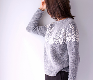 Pattern includes full written instructions, except for the yoke motif which is provided as charts only. Charts for both dark and light backgrounds, and Ladder Back Jacquard (LBJ) placements are provided.