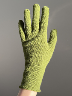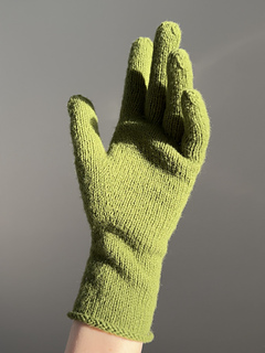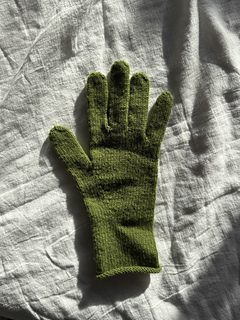 The green Fiona Gloves are worked in Como from Lamana in color 66 Como in size 2.