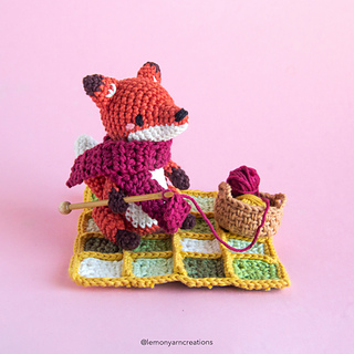 Every year, the adorable creatures of the Enchanted Woodland meet up for a picnic of grand proportions. Fiona the Fox is the known crafter of the group, and no matter the occasion, you’ll always find her creating something with her hands. For this special picnic, she brought her favorite quilted throw so she could sit peacefully while she finished crocheting her cozy scarf.