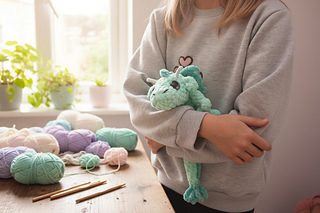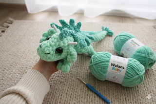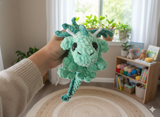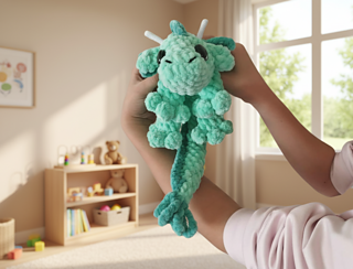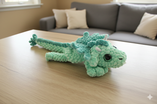 Meet Fira the Dragon — a gentle, soft amigurumi with a long tail, small wings, and an adorable expression.