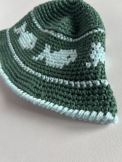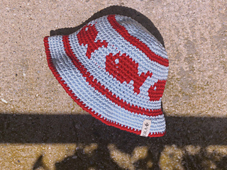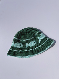 The Fish Bucket Hat is an intermediate crochet pattern worked primarily in single crochet with a 5mm hook with tapestry crochet to design the fish motif. The result is a sturdy classical bucket shaped hat.
