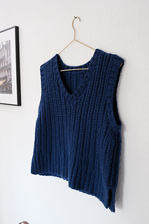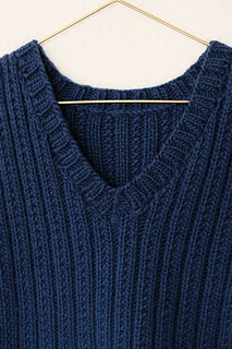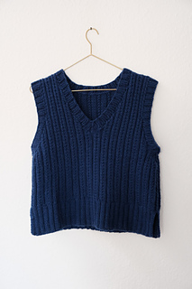 Bottom-up. The front and back are first worked in the round, then separately. After completing both pieces, the shoulders are joined. The collar and armhole bands are picked up and knitted in rib.
