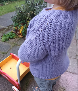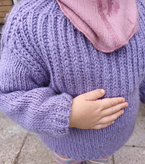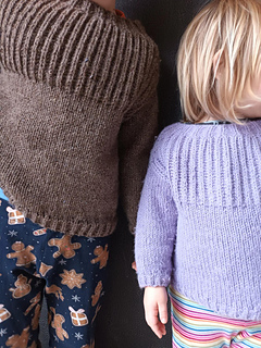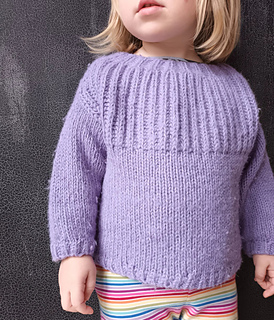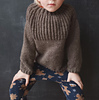 A warm brioche sweater knitting pattern for children, worked from the top down. The neck and yoke are worked in brioche stitch with increases. The work is then divided, and the front and back pieces are worked separately, flat, in brioche stitch to create the armholes. The pieces are then joined, and the body is knit in the round on circular needles in stockinette stitch, finished with a brioche hem. Stitches are picked up for the sleeves, which are knit in the round in stockinette stitch and finished with a brioche hem.