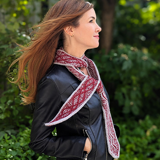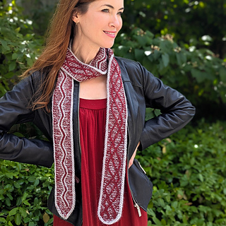 This scarf is worked at a tight gauge to accommodate this stunningly intricate cable motif. Alpaquina’s alpaca content creates a luxuriously drapey fabric.