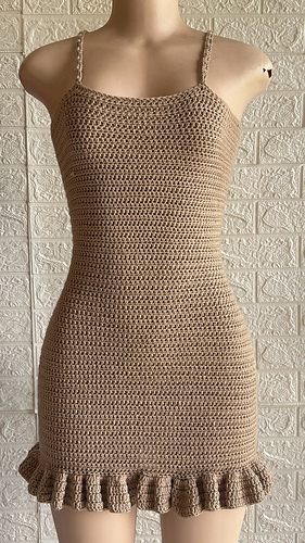 Introducing the Crochet Fitted Ruffle Dress by shylercrochets — a simple yet timelessly classy design inspired by the popular Crochet Pleated Ruffle Dress. This stunning bodycon-style dress features a delicate ruffle detail at the hem, adding a touch of femininity and movement to its sleek silhouette.
