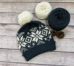 This stranded colour work pattern bundle includes the patterns for both the Fitzroy toque and cowl. Colour work charts provide instructions for the main bodies of the hat and cowl, while the remaining instructions are in written format.