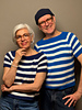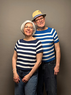 Willi trägt Gr. L bei BU 106 cm (= 10 cm Mehrweite), Ärmel mittlere Länge in mint und gestreift. Ich trage das Tee in Gr. M bei BU 93 cm (= 15 cm Mehrweite), Ärmel kurze Länge in weiß und gestreift.